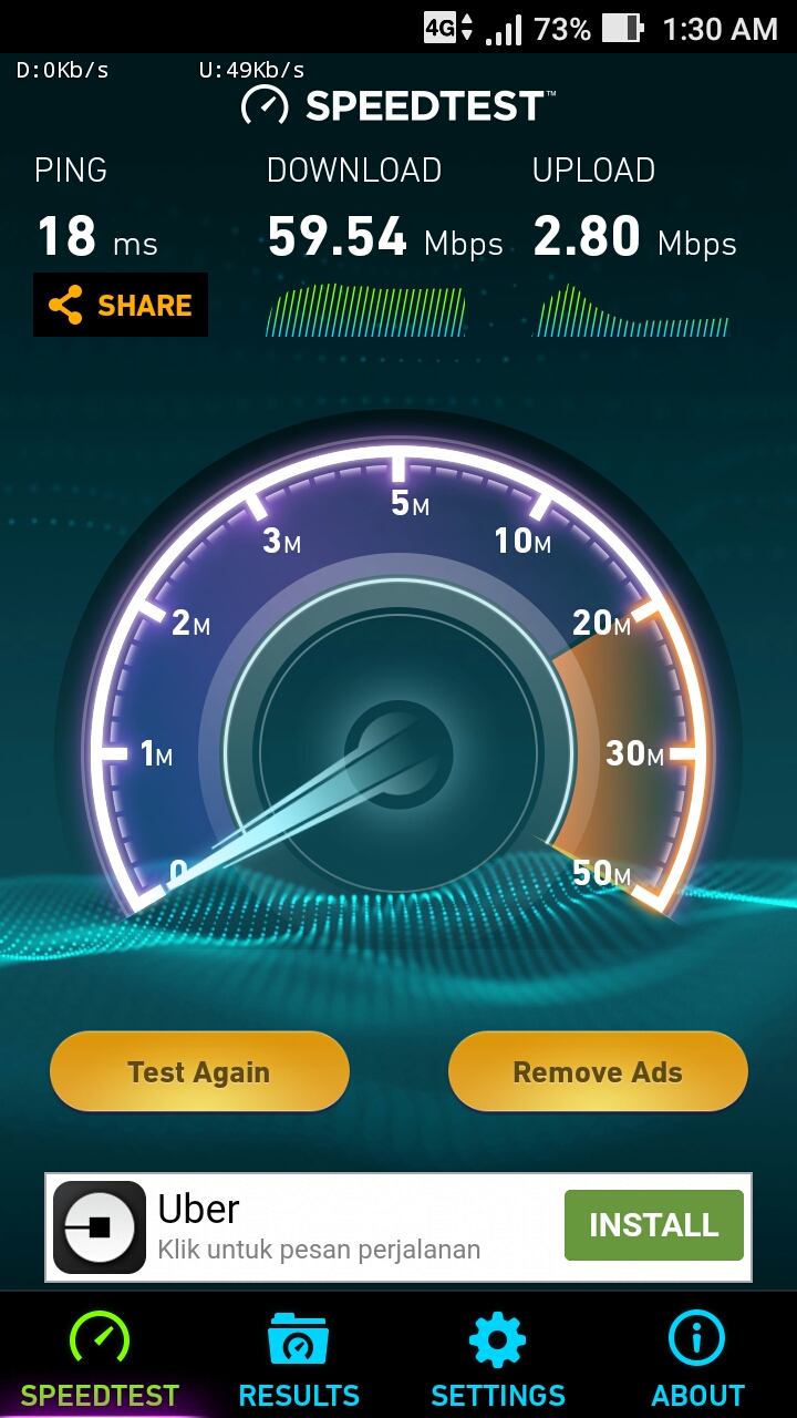 Yang juga sangat menarik, ASUS Zenfone Live juga sudah mendukung seluruh operator 4G LTE yang beroperasi di Indonesia. Mulai dari Telkomsel, Indosat, XL, 3 sampai Smartfren dan Bolt. Berikut ini contoh kecepatan yang didapat saat menggunakan kartu operator Smartfren pada ASUS Zenfone Live ZB501KL:
