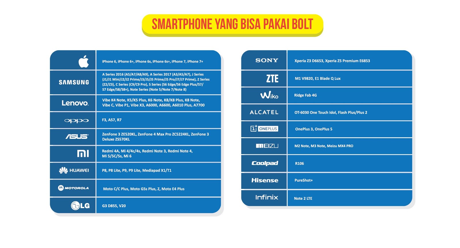 Salah satu solusi yang bisa kita pakai untuk mengakses internet adalah menggunakan layanan Bolt Unlimited. Selain harga yang murah, Bolt menyediakan Internet tanpa batas yang tentunya bisa Anda rasakan selama menggunakan layanannya. Kepuasan tak perlu diragukan lagi karena layanan dan network milik Bolt sudah lebih baik dari sebelumnya.
